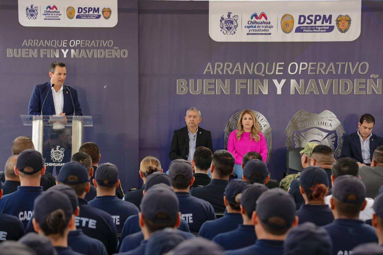 Chihuahua Chih.- El alcalde Marco Bonilla Mendoza y el director de Seguridad Pública Municipal Julio Cesar Salas, acompañados de empresarios y regidores, dieron el banderazo de salida a