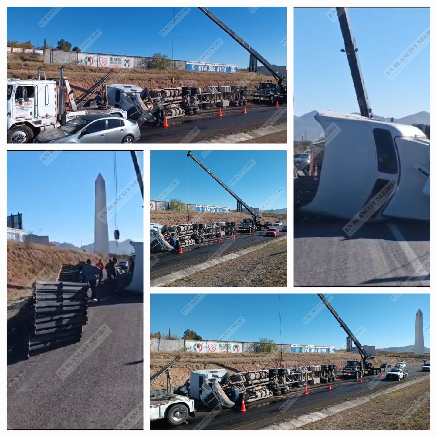Chihuahua, Chih.- Un impresionante caos vial se registró la mañana de hoy en la carretera que conduce de Chihuahua a Ciudad Juárez un kilometro antes de llegar a