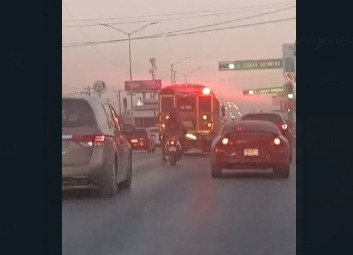 Un camión de la industria maquiladora avanzó peligrosamente sobre la avenida Tecnológico, con torretas encendidas en lugar de los focos convencionales, lo que está prohibido por la ley