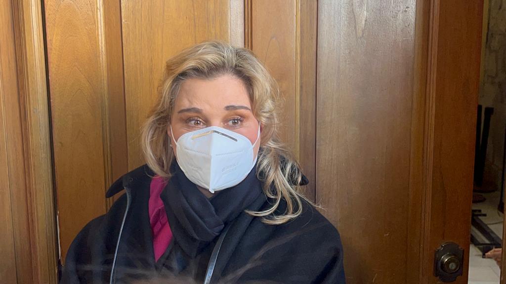 La gobernadora del estado, María Eugenia Campos Galván, arribó este mediodía a Palacio de Gobierno trayendo puesto en el rostro un cubrebocas KN95 debido a que la semana