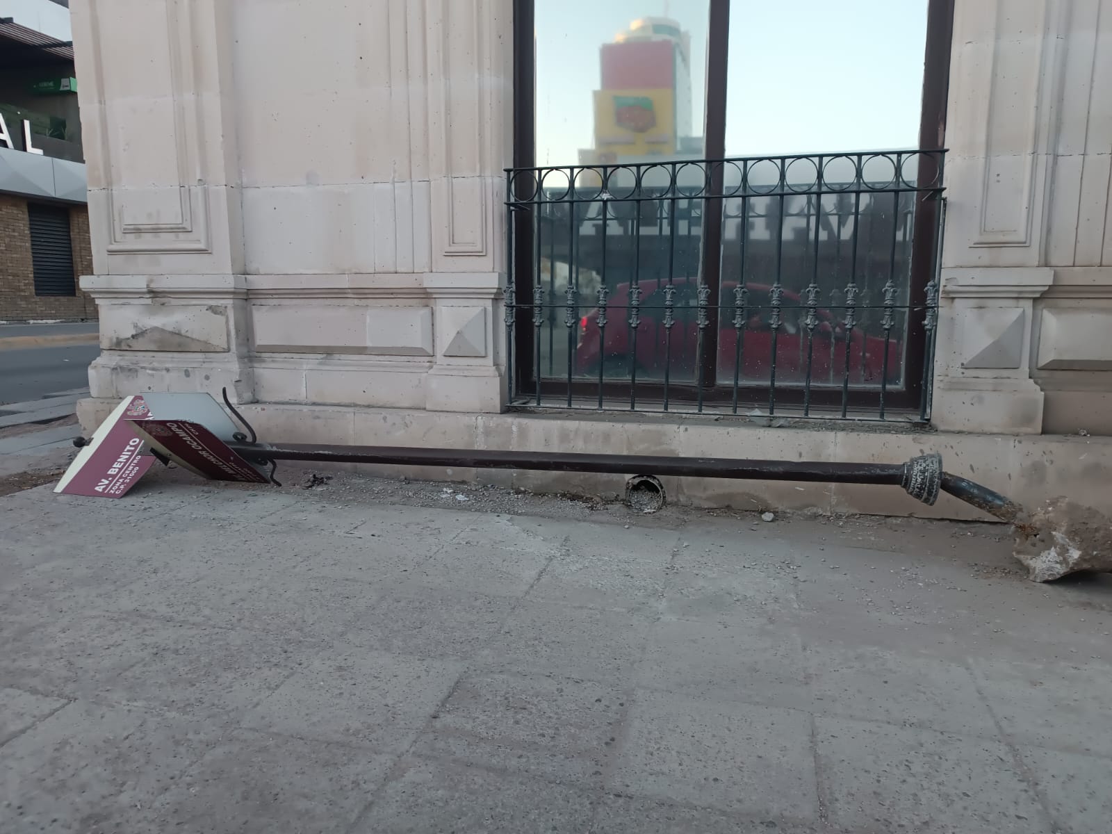 Durante la mañana de este lunes, un señalamiento tirado en la banqueta llamó la atención de los ciudadanos después de verlo derrumbado a un costado del Museo Casa