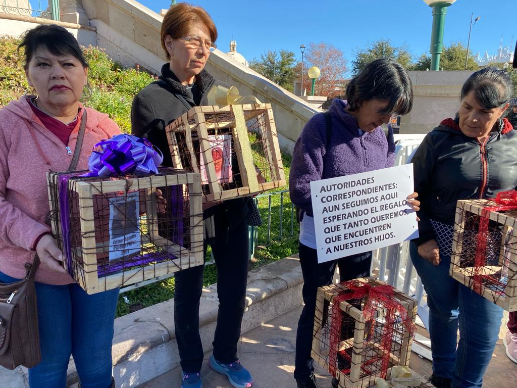 Chihuahua, Chihuahua: Familiares de personas desaparecidas en el estado de Chihuahua colocaron esta mañana fotografías de sus seres queridos en el árbol de Navidad de la Plaza del