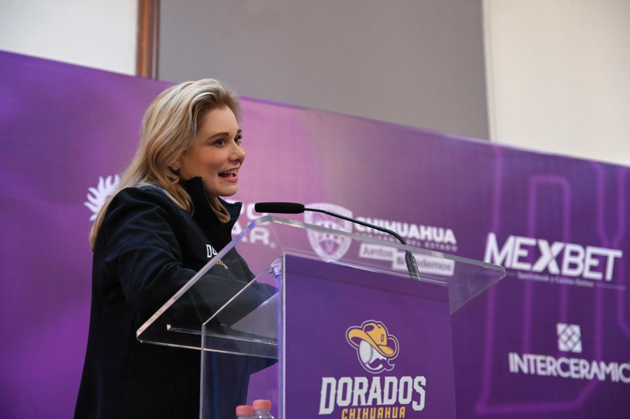 La gobernadora Maru Campos presidió en el Palacio de Gobierno, la ceremonia en que fue presentado oficialmente el equipo Dorados de Chihuahua, como nuevo integrante de la Liga