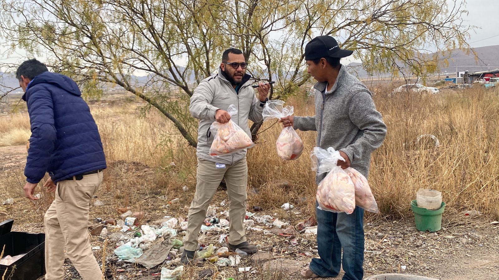Trabajadores voluntarios de Megaradio están llegando a las colonias más aparatadas de la Ciudad de Chihuahua, para dejar la dotación de 3 pollos de la promoción denominada “Apollotito”,