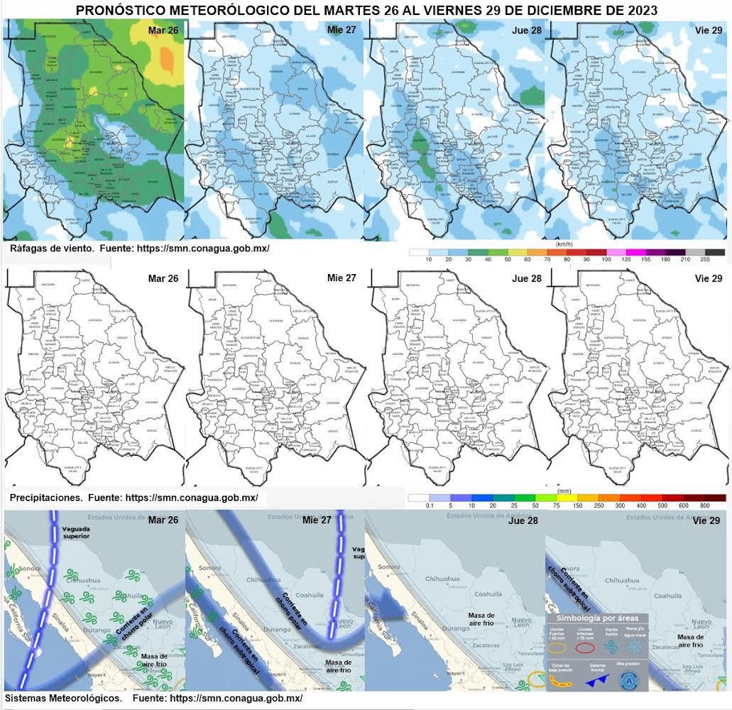 La Coordinación Estatal de Protección Civil informó que se mantendrán bajas las temperaturas en el territorio estatal con hasta -8º centígrados (°C) en la zona serrana y 0ºC en la capital debido al paso del frente frío número 19.