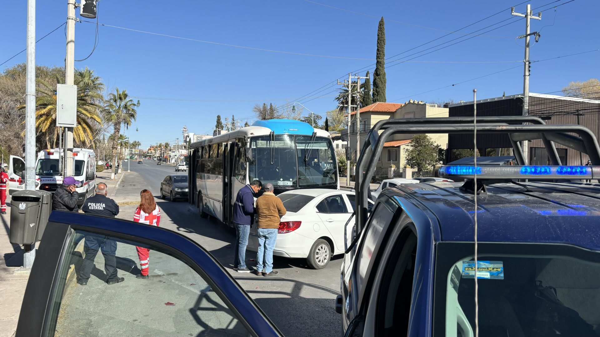 Chihuahua, Chih.- Por un descuido de una conductora que viajaba en un Chevrolet Aveo color blanco, terminó siendo impactada por un camión de la ruta troncal dejando una