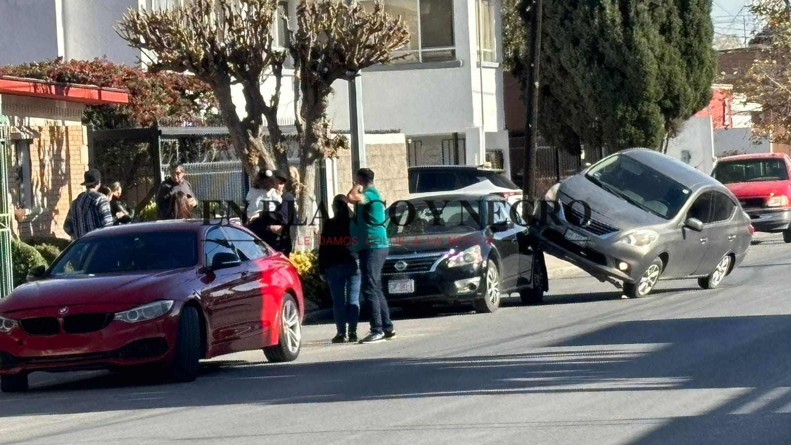 En calles de la colonia San Felipe, un auto terminó arriba de otro luego de una conducción errática, por parte del conductor, dejando daños materiales y fuerte susto