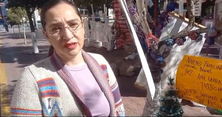 Un grupo de mujeres realizó una manifestación en la Plaza Hidalgo con el fin de sensibilizar a las autoridades sobre la violencia vicaria. Lizeth, una de las manifestantes