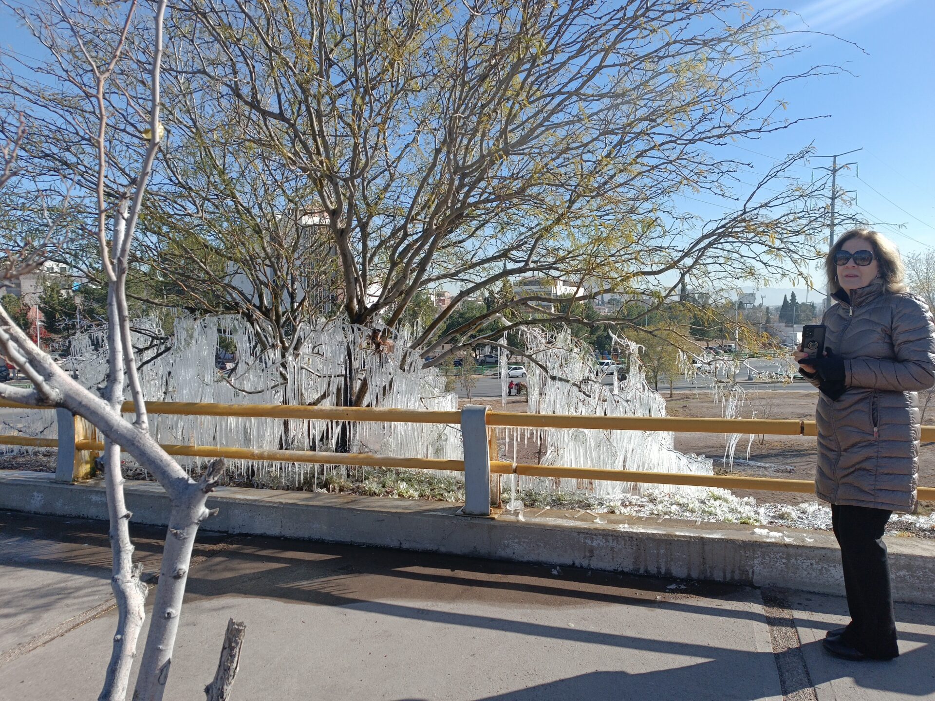 Decenas de ciudadanos en Chihuahua se detuvieron en el bullicioso Boulevard Ortiz Mena, entre la avenida Mirador y Deza y Ulloa, para inmortalizar el escenario inusual dejado por