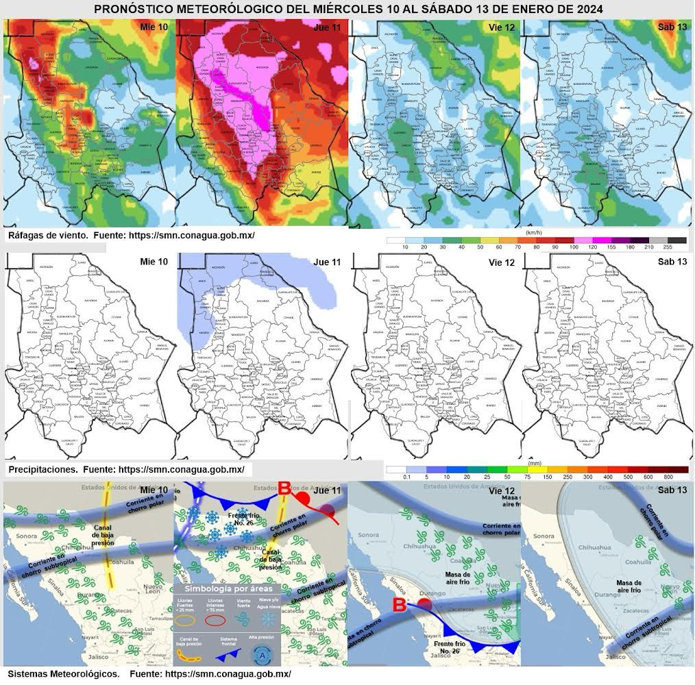 Tras el reporte emitido por la Coordinación Estatal de Protección Civil (CEPC), en relación a que el jueves 11 de enero se contemplan fuertes rachas de viento en