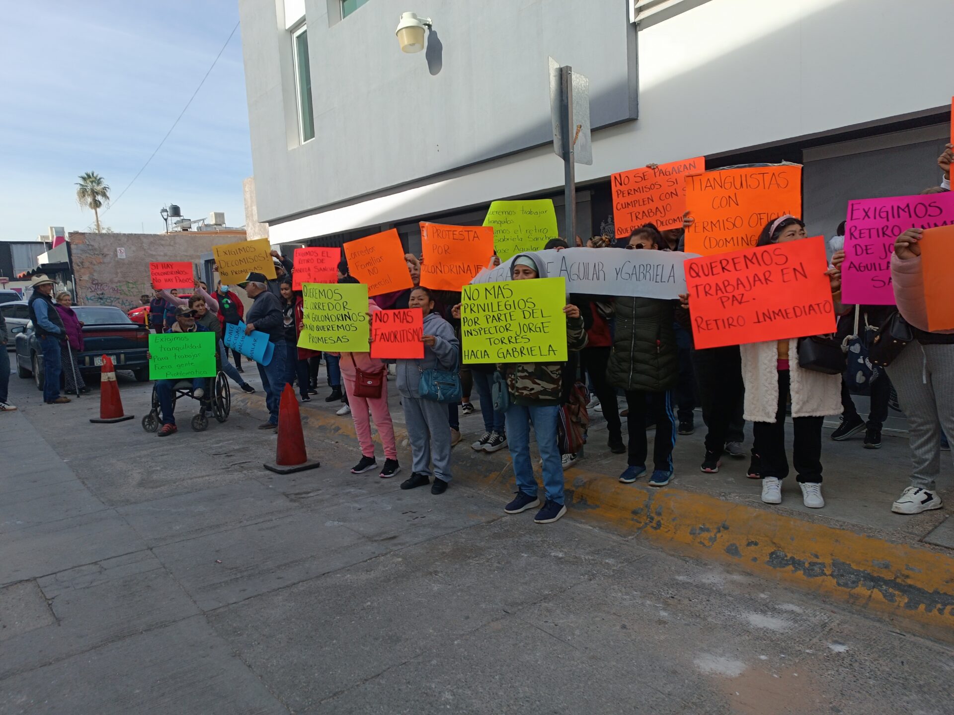 Chihuahua, Chih.- Un grupo de tianguistas se manifestó en la Presidencia Municipal para denunciar a Ever Caldera Ruiz, líder de la colonia 11 de Febrero, por presunto hostigamiento