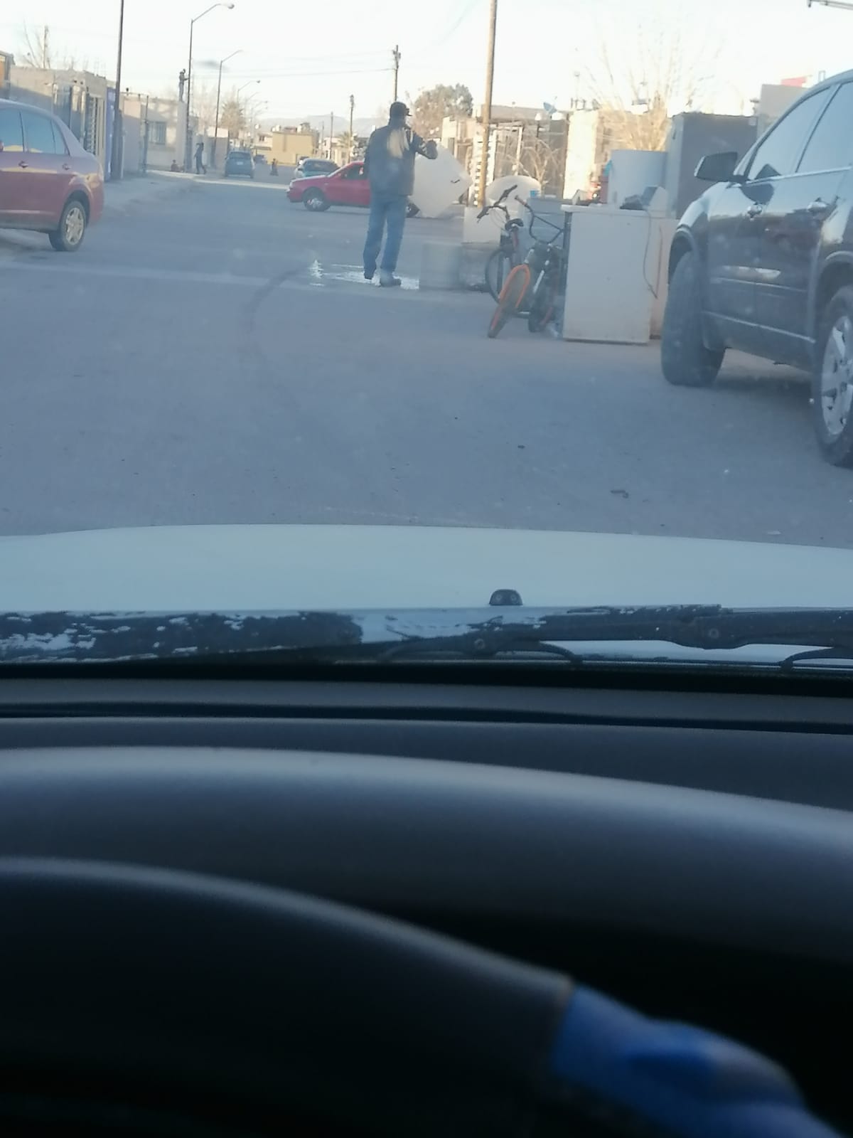 Chihuahua, Chih.- Un residente de la colonia Praderas del Sur se apropió de la mitad de la calle para utilizarla como parte de su negocio de lavadoras y secadoras, mismas que tiene en la cinta asfáltica, banqueta y otras viviendas.