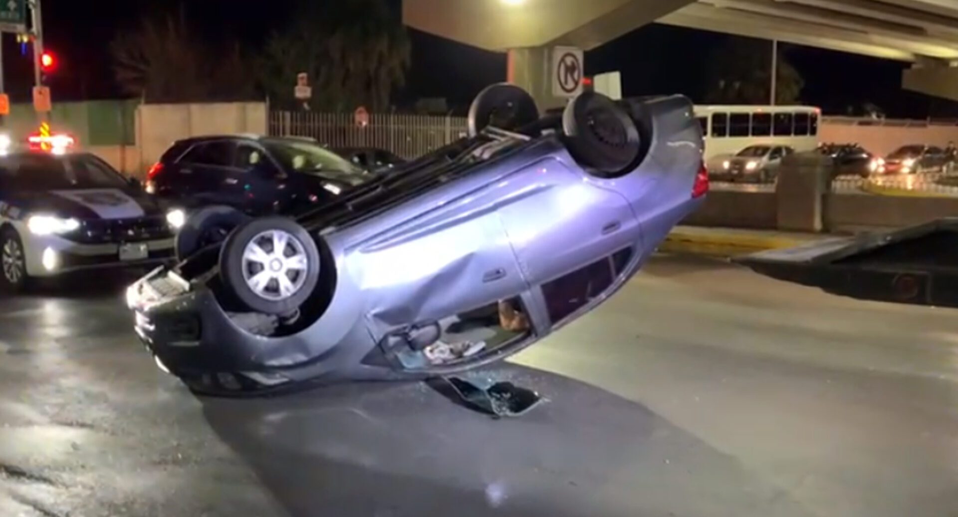 Chihuahua, Chih.- Un accidente vial con volcadura en el cruce de las calles Pacheco y Teófilo Borunda Sur, involucrando a dos conductoras. El incidente tuvo lugar entre un