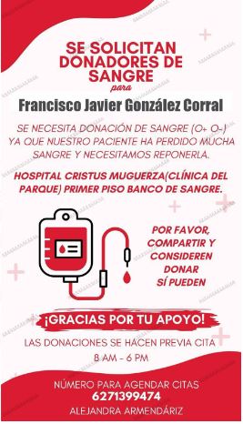 Chihuahua, Chihuahua. – Los lectores de en blanco y negro solicitaron apoyo de la ciudadanía para donar sangre a Francisco Javier Gonzales Corral, quien se encuentra en estos