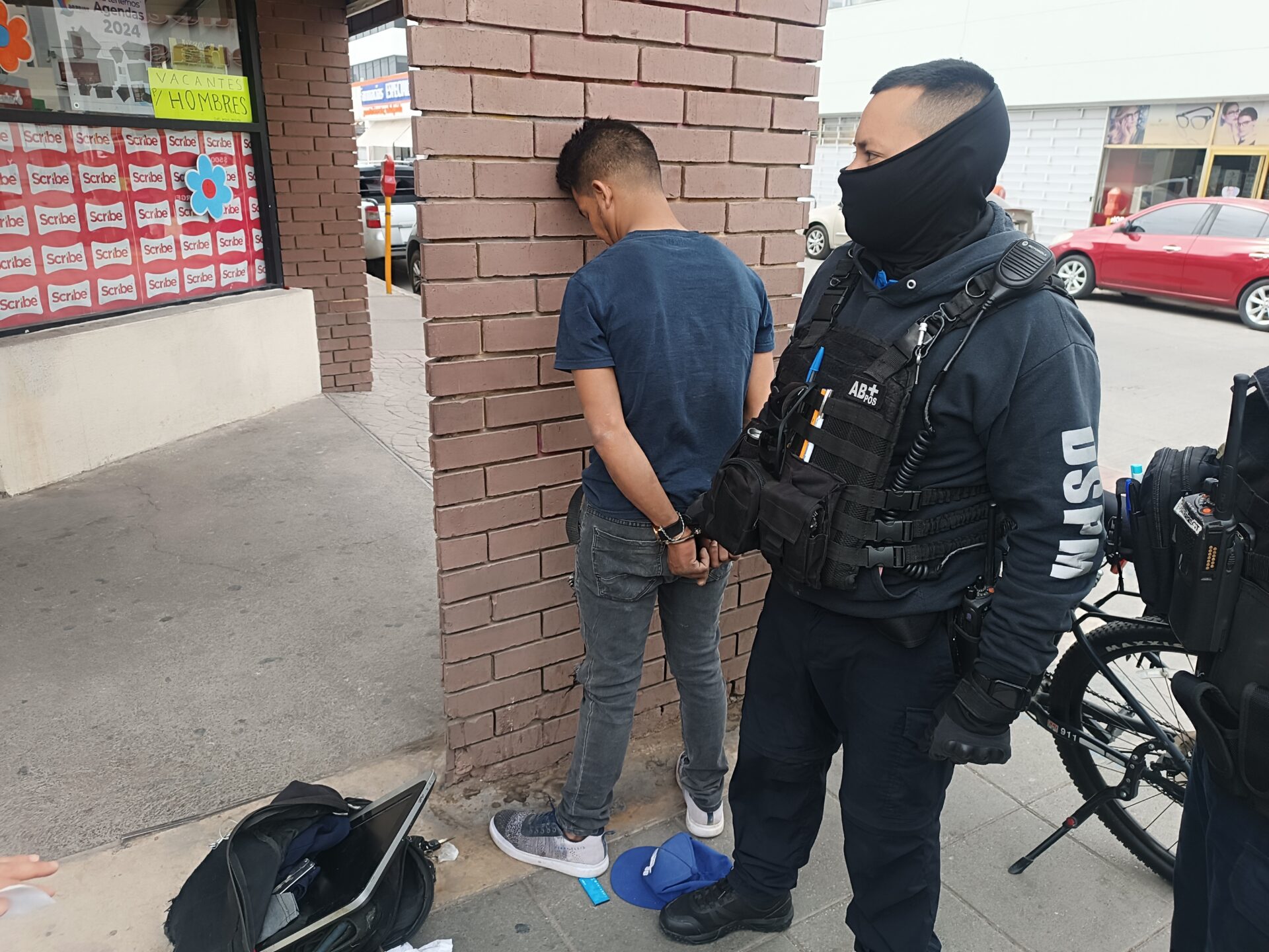 Chihuahua, Chih.- Agentes de la Policía Municipal y del Grupo Beta detuvieron a un joven en el centro de la ciudad de Chihuahua por portar sustancias con características
