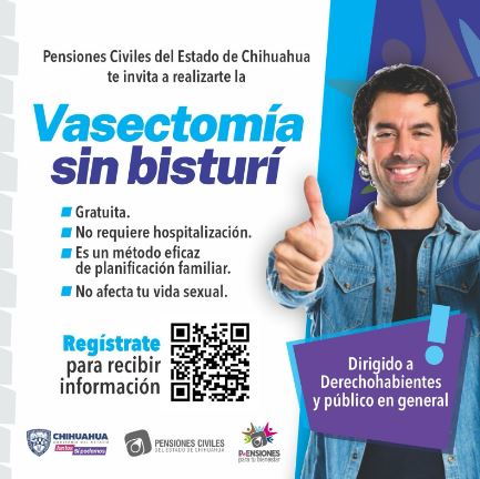 Chihuahua, Chih. – Con el objetivo de promover la salud reproductiva en los hombres, Pensiones Civiles del Estado (PCE) invita a realizarse la vasectomía sin bisturí del 20