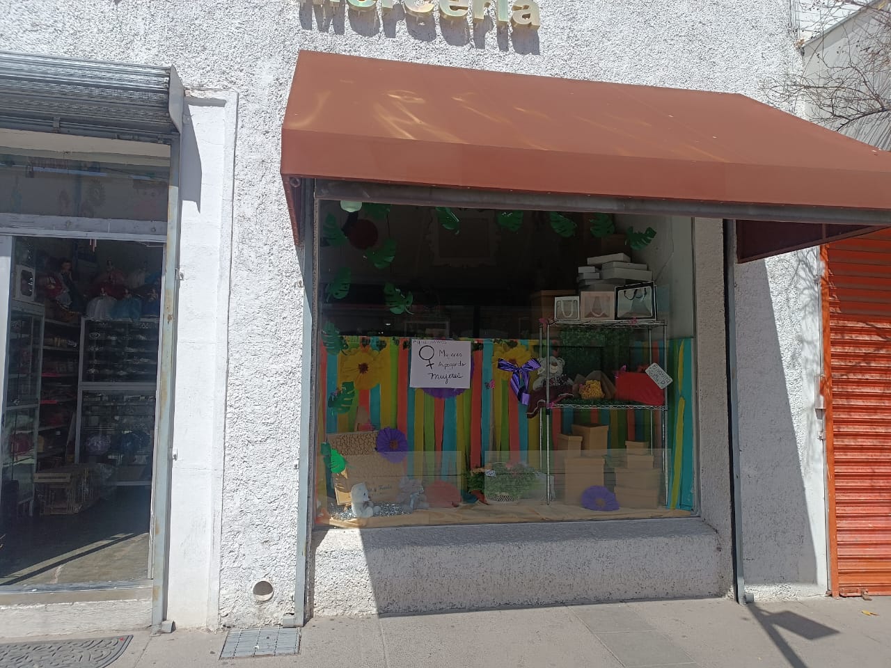 Chihuahua, Chih.- Distintos locales del primer cuadro de la ciudad colocaron distintos carteles a favor del movimiento del 8M por lo cual es posible verlos en los ventanales.