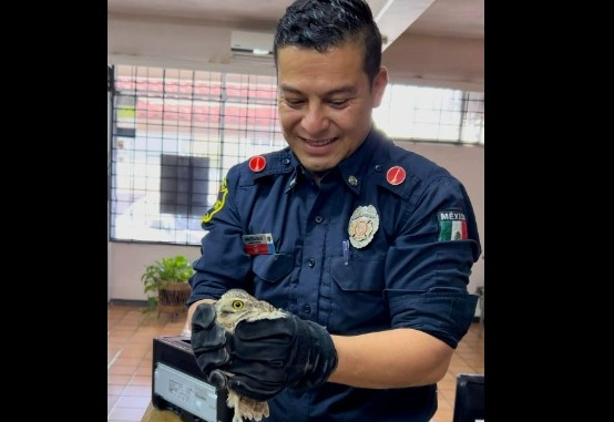 Elementos del Cuerpo de Bomberos realizaron el rescate de una Lechuza, de mediana edad, tras un operativo en una bodega ubicada en la avenida Teófilo Borunda. El personal