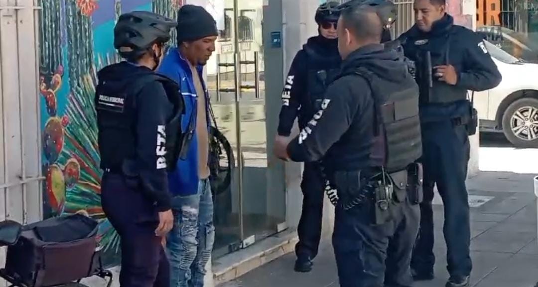 Chihuahua, Chih.- Agentes de la policĂa municipal detuvieron hace unos momentos a migrantes debido a que se les acusĂł por robo en el centro de la ciudad.