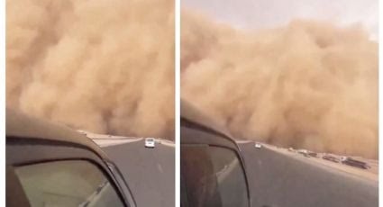 Una gran nube de arena que se aproxima cerca de Paila, en el Municipio de Parras, a unos 120 kilómetros de la capital, fue captada frente vehículos que ya no pudieron avanzar ante la invisibilidad de su camino.