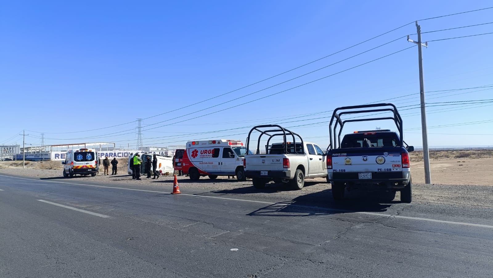 Chihuahua, Chih.- Una volcadura en una van del Instituto Nacional de Migración ha dejado como saldo un total de 7 personas lesionadas, entre ellas a dos mujeres. El