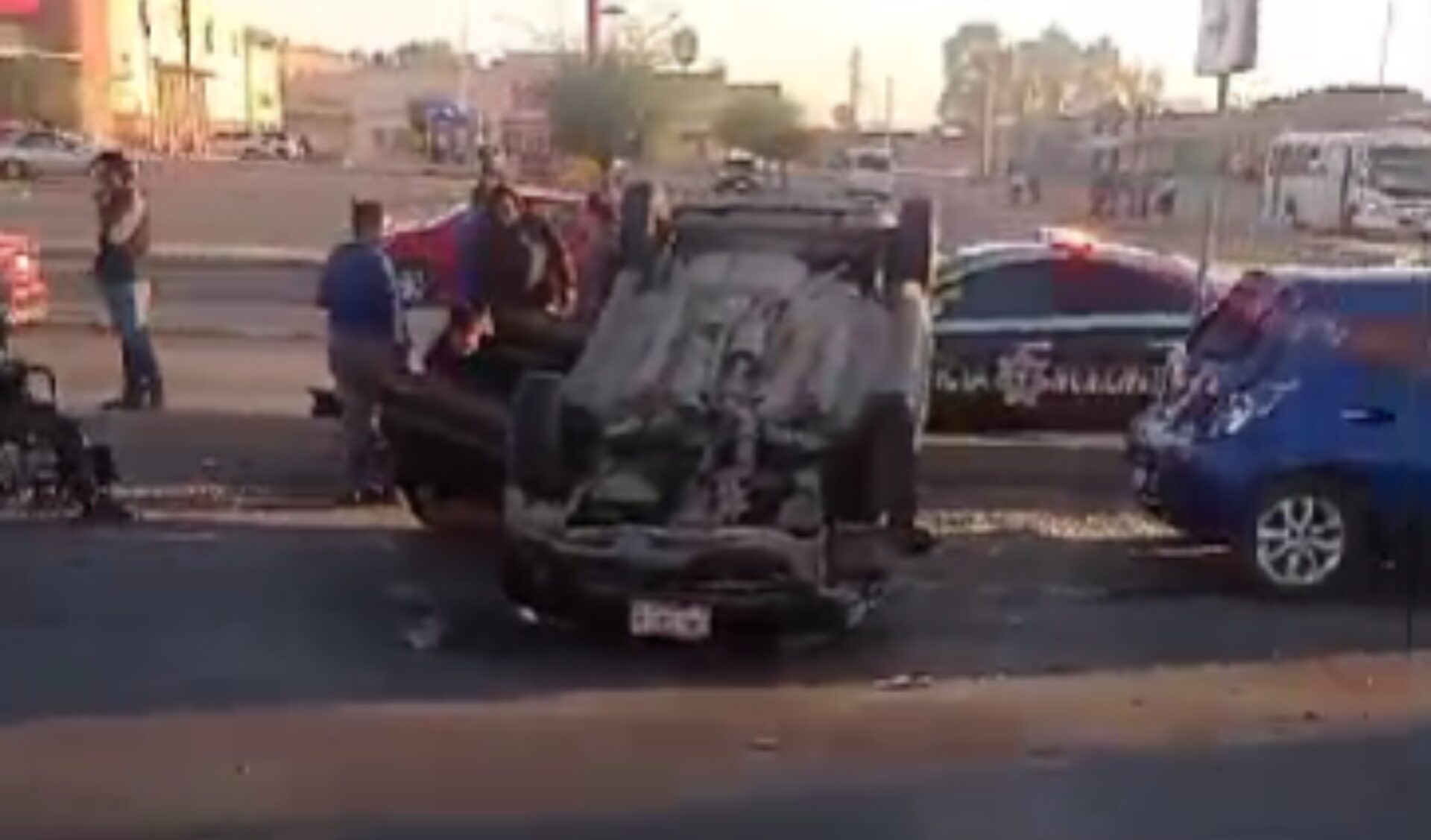 Chihuahua, Chih.- Una aparatosa volcadura se registró al Sur de la ciudad de Chihuahua en donde se presume que existe una persona atrapada dentro de su vehículo. Por