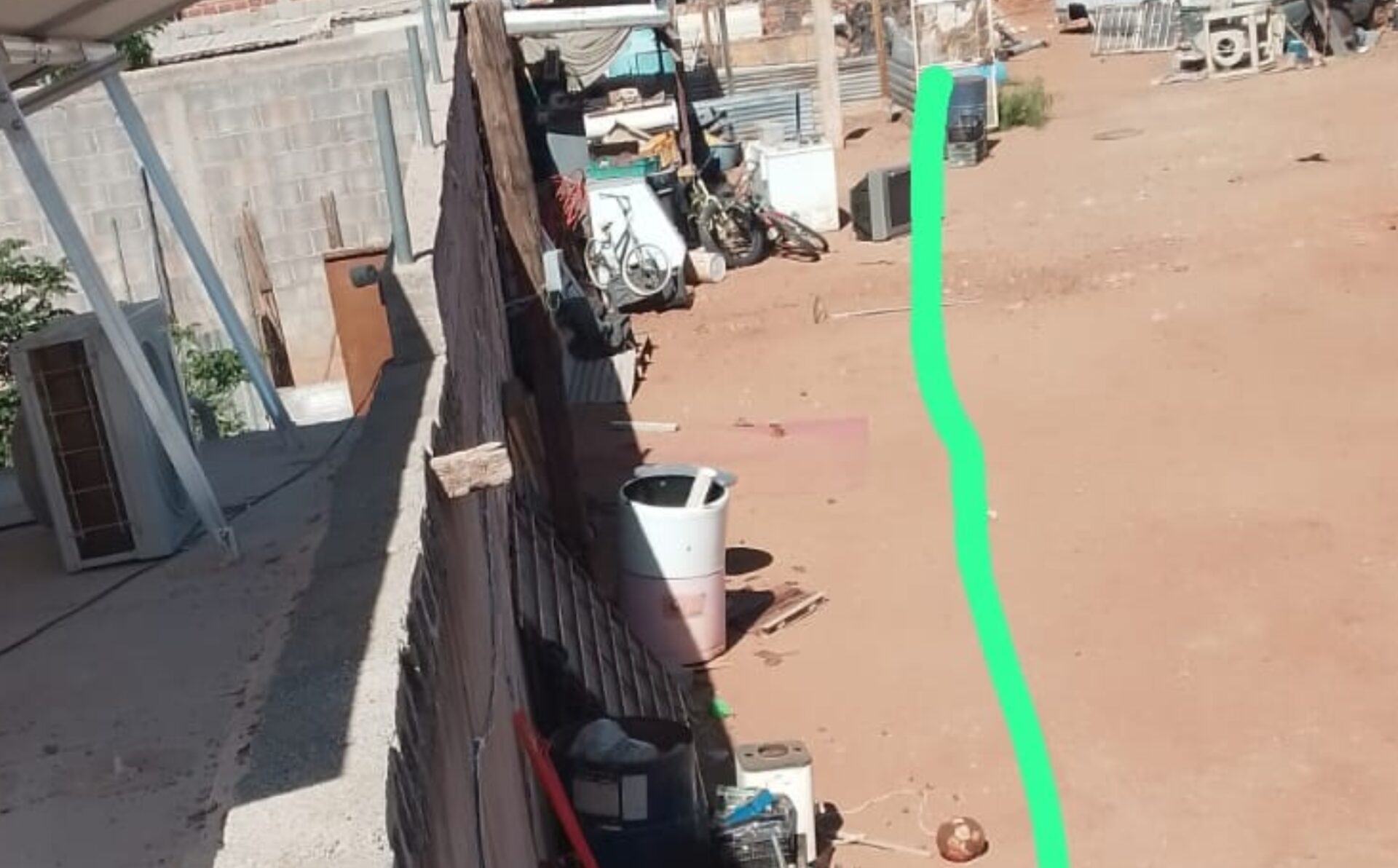 Chihuahua, Chih.– Virginia Muñoz, residente de la colonia Villa Juárez, denuncia la acumulación de tiliches en la barda de su vecino, ubicada en la calle 5 de Mayo