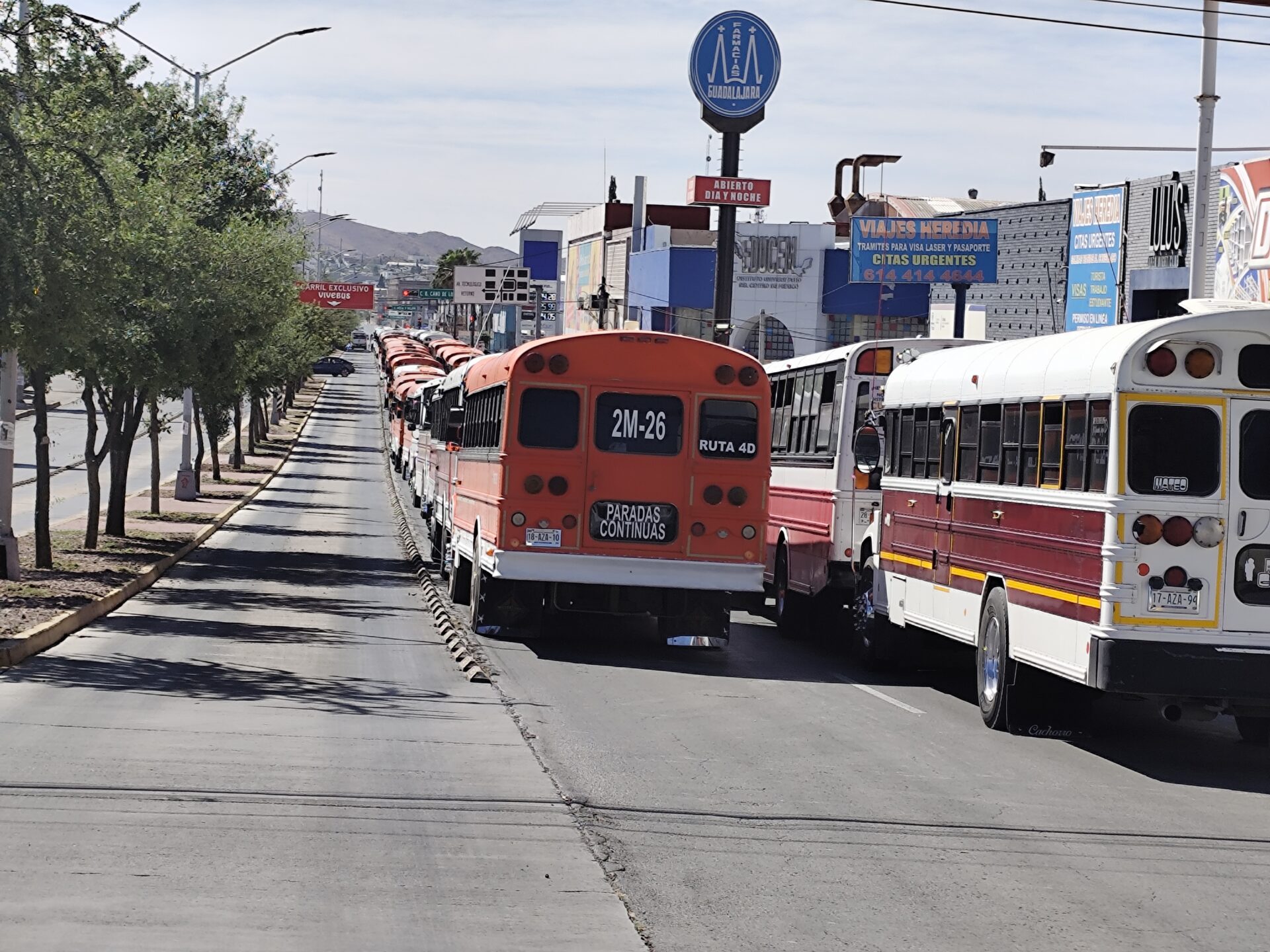 Chihuahua, Chih.- Cientos de camioneros se manifestaron este sábado en la avenida Universidad de Chihuahua, bloqueando el paso vehicular desde la División del Norte hasta el Palacio de