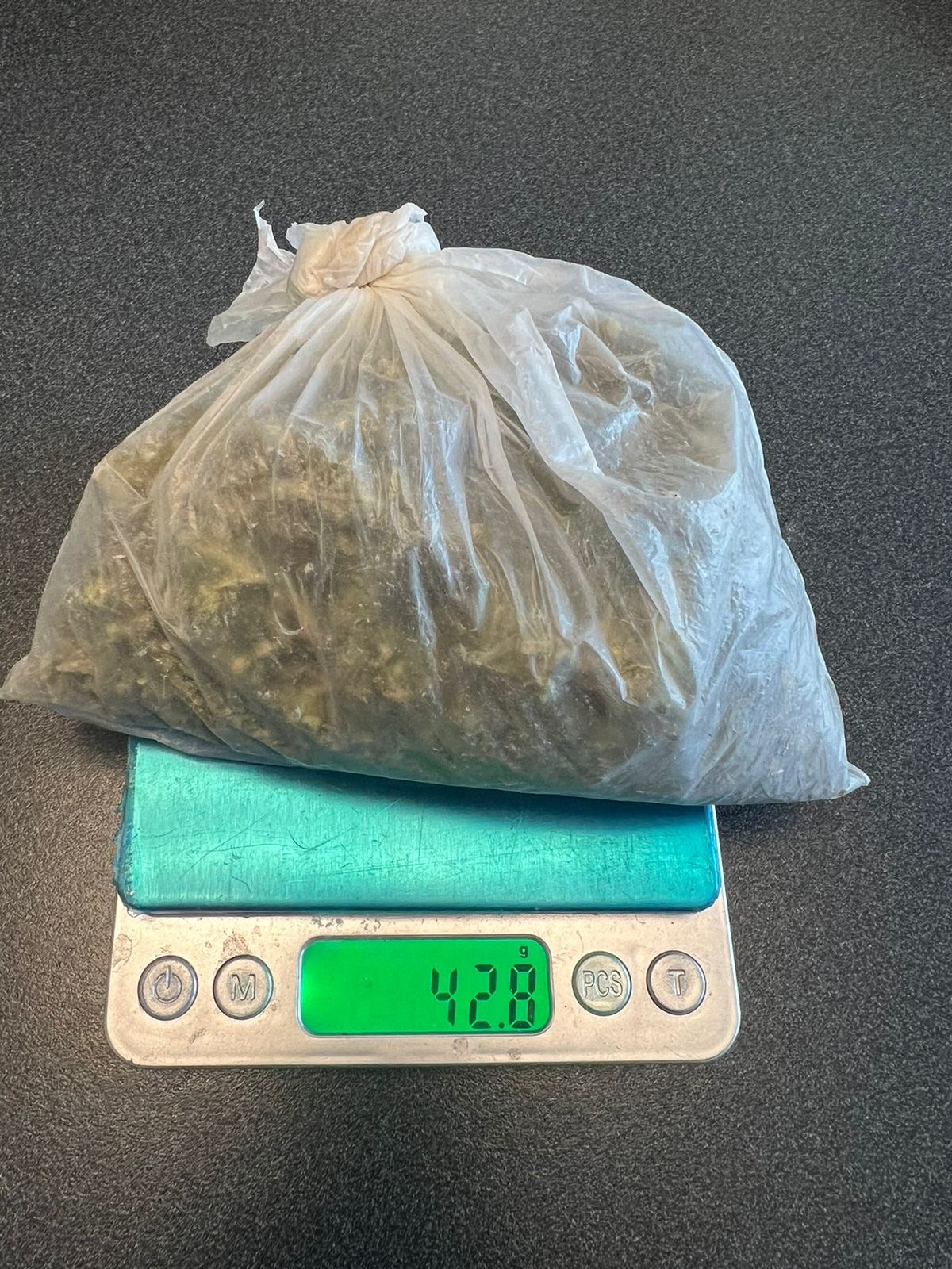 Durante la revisión rutinaria, los elementos de la SSPE identificaron entre las pertenencias de Pablo y Alfredo, 2 envoltorios plásticos, con un total de 151.3 gramos de una hierba verde seca y olorosa, de características idénticas a las de la marihuana, razón por la que se les detuvo formalmente.