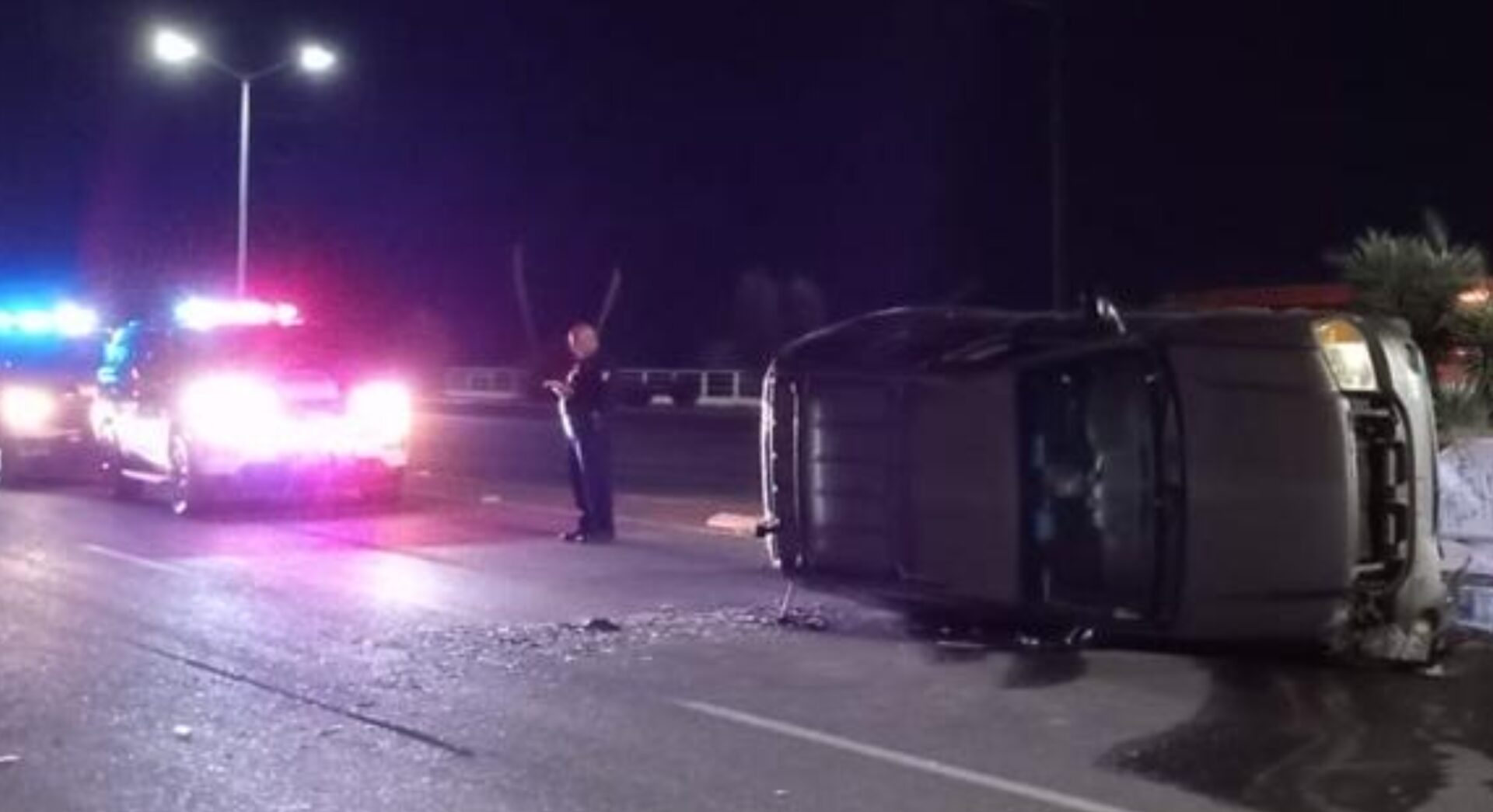 Chihuahua, Chih.- Un accidente vial se reportó durante la noche en donde un vehículo terminó volcado y abandonado en el periférico R. Almada, específicamente en la calle 38,