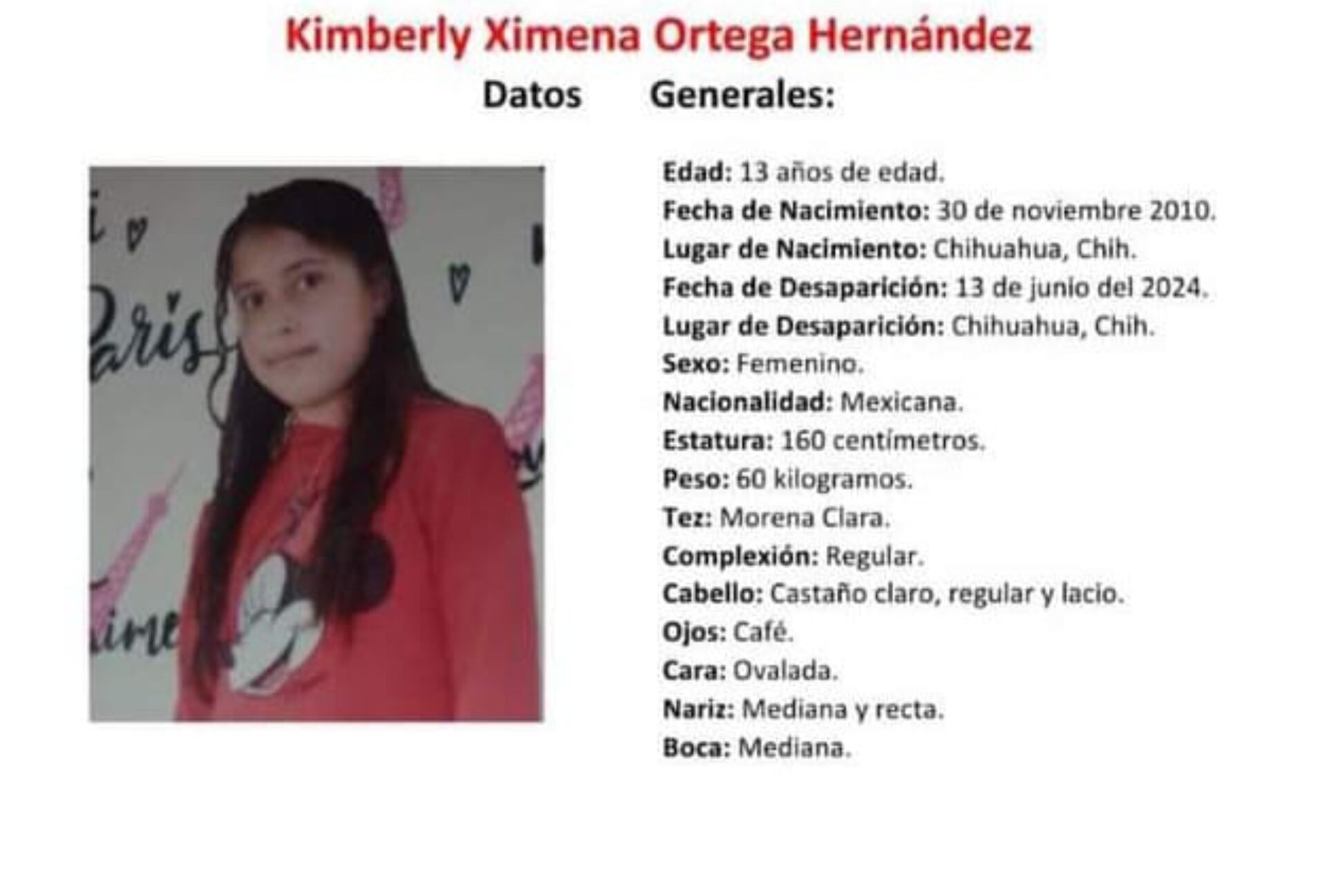 Chihuahua, Chih.- La Fiscalía General del Estado de Chihuahua solicita el apoyo de la ciudadanía y los medios de comunicación para localizar a Kimberly Ximena Ortega Hernández, de