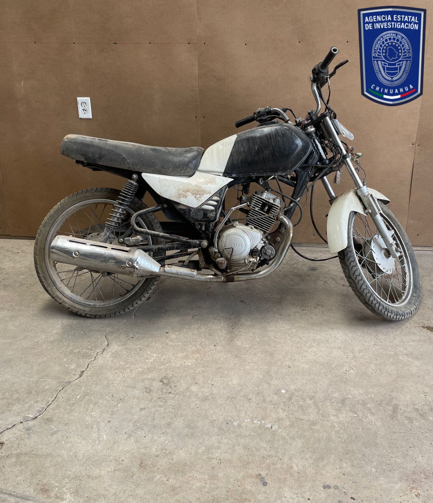 Chihuahua, Chih.- Elementos de la Agencia Estatal de Investigación adscritos a la Fiscalía de Distrito Zona Occidente, durante las acciones de revisión de vehículos, aseguraron una motocicleta que