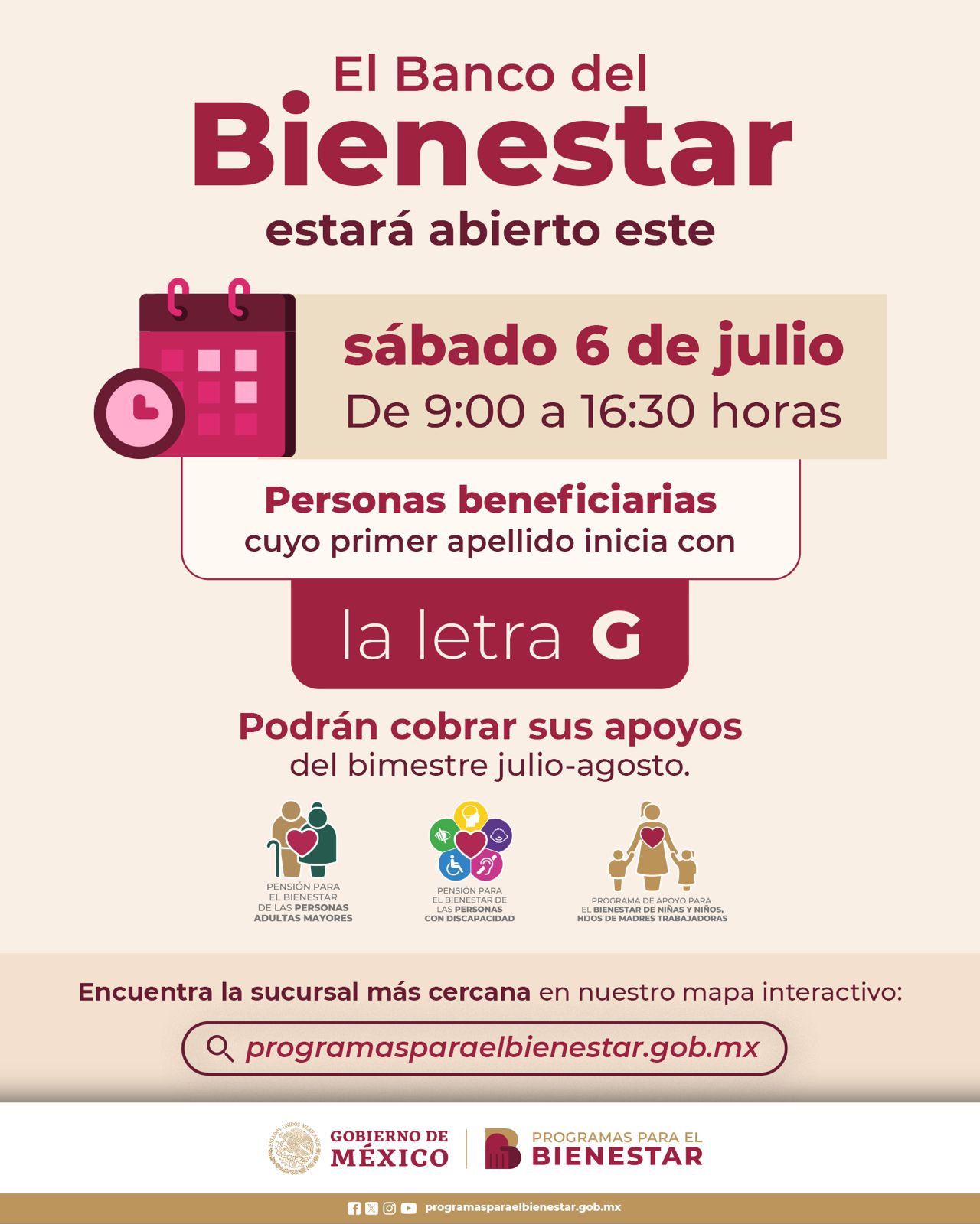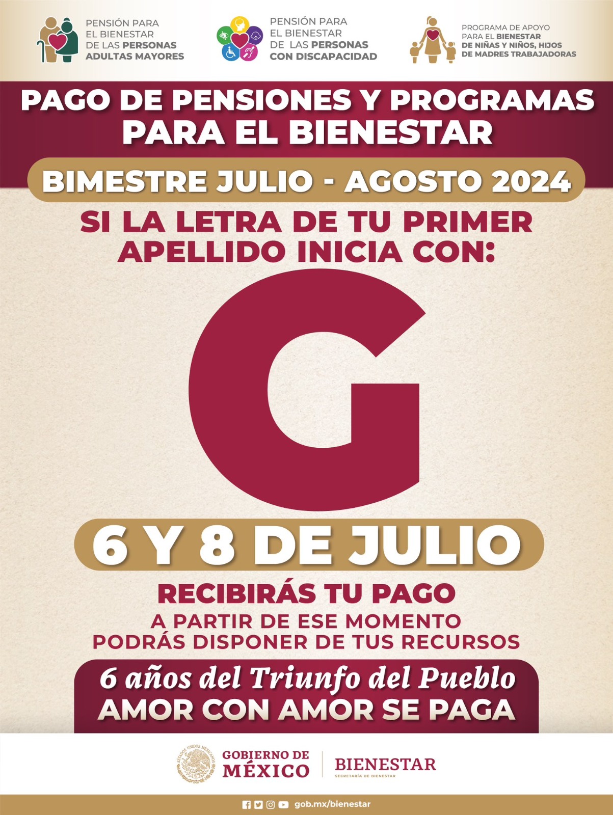 Chihuahua, Chih.- La Secretaría de Bienestar anunció que durante el día de hoy y el 8 de julio se estará recibiendo a las personas cuyas iniciales empiezan con la letra “G”.