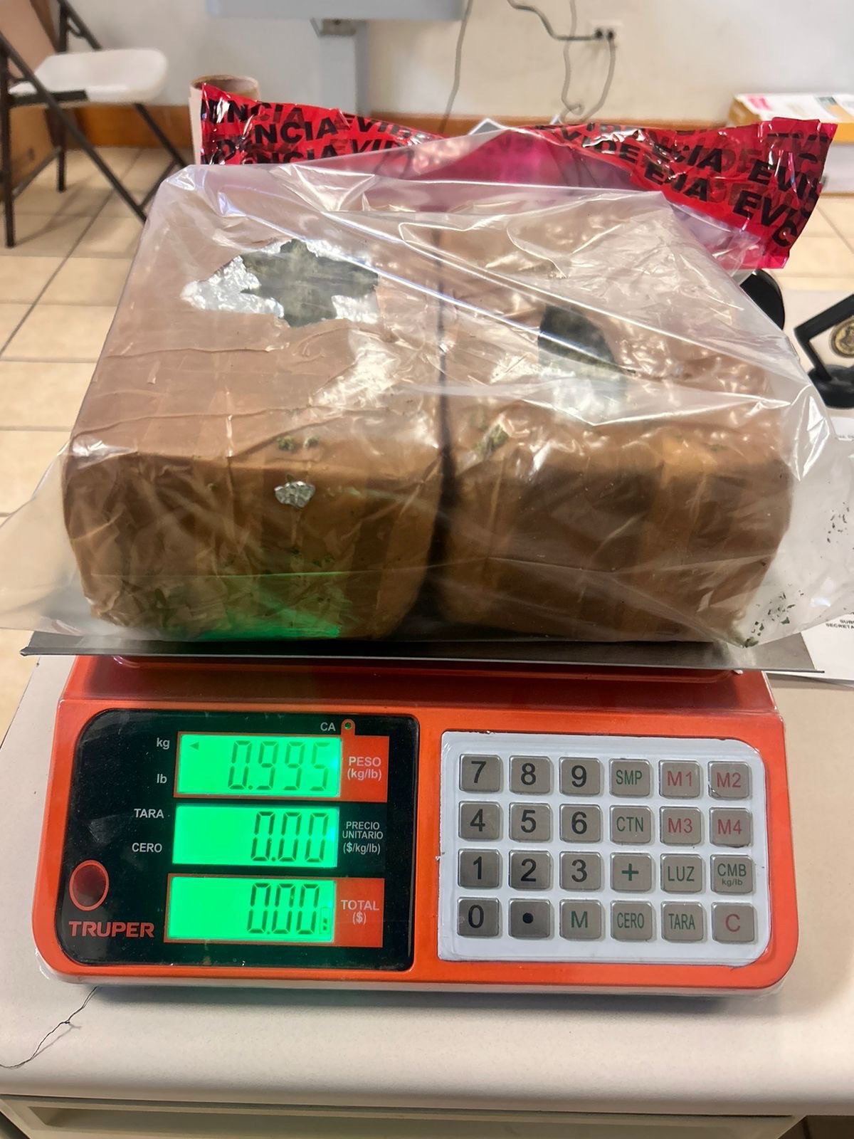 Durante la revisiĂłn, se encontraron dos paquetes envueltos en cinta canela, que en el interior contenĂa una hierba seca, verde y olorosa, con las caracterĂsticas de la marihuana. La persona y los envoltorios, asĂ como el vehĂculo fueron puestos a disposiciĂłn de la FiscalĂa General de la RepĂşblica (FGR) para su investigaciĂłn correspondiente.