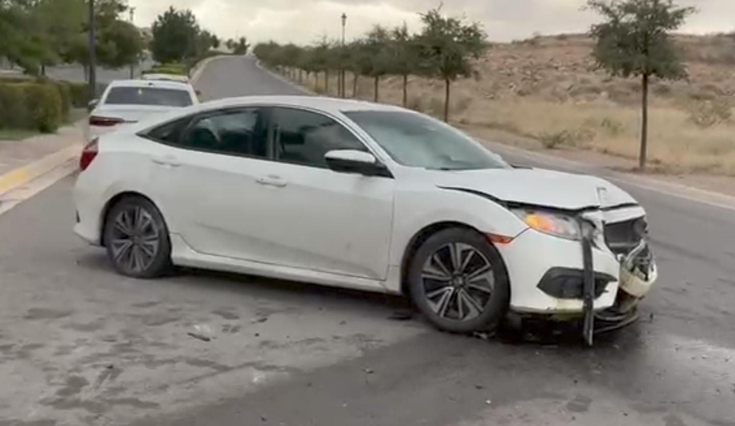 Chihuahua, Chih.- Un accidente de tránsito ocurrió en la Colonia Altozano cuando un automóvil Honda Civic chocó contra un poste y un árbol en el cruce de las