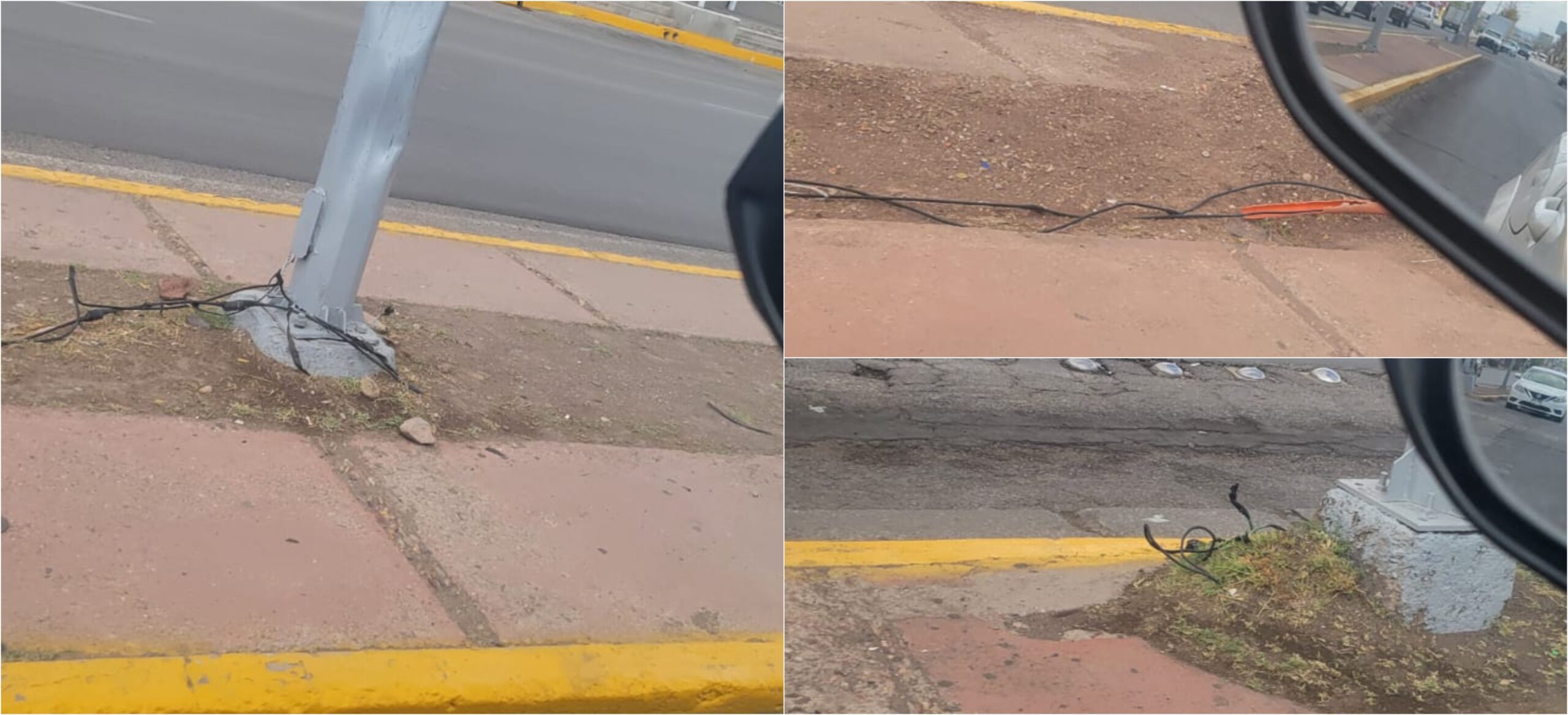 Chihuahua, Chih.- Vecinos denuncian cables sueltos de alumbrado público en el camellón de la Av. Tecnológico, desde la calle Mercurio hasta la Pinabete.