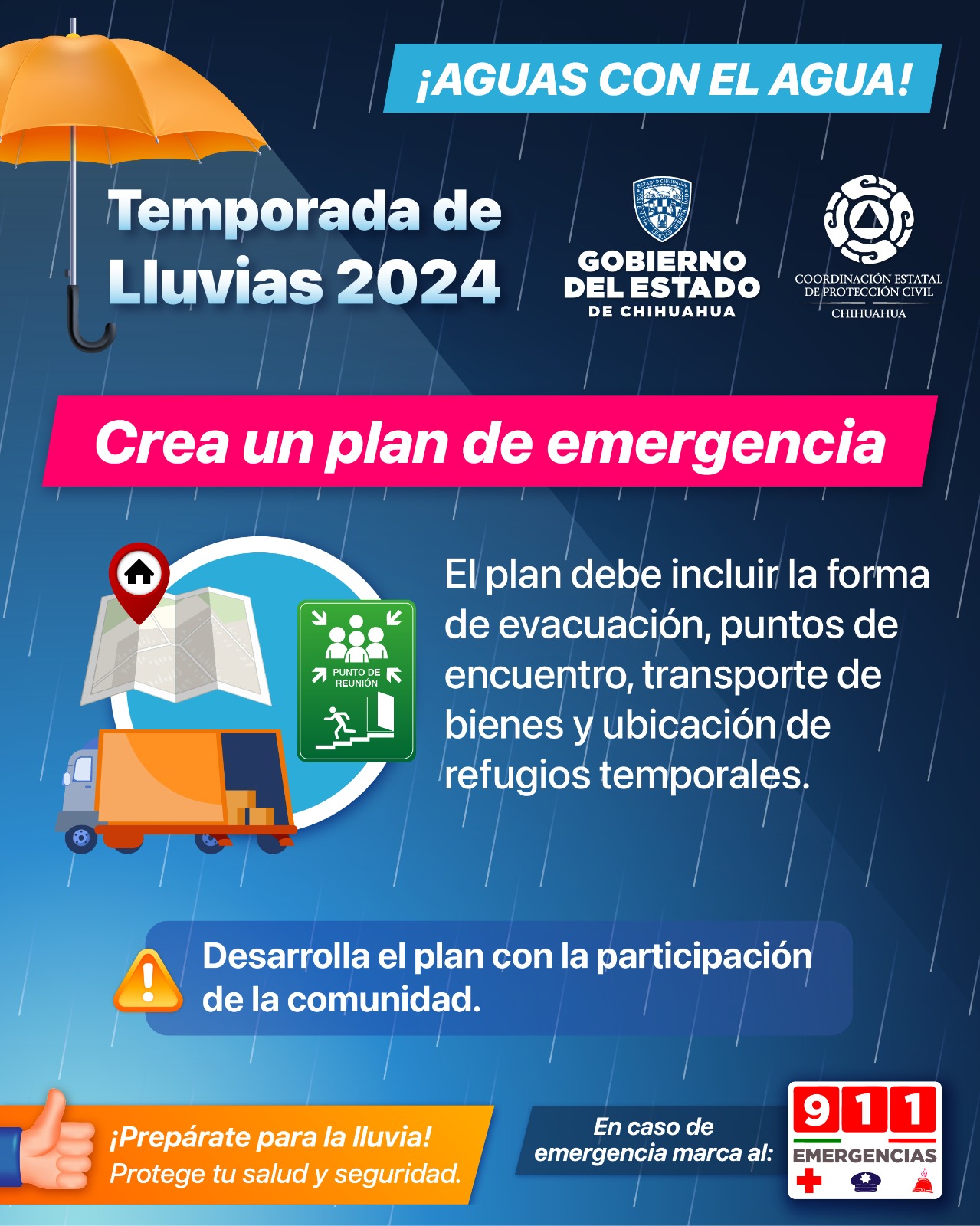 Chihuahua, Chih.- La Coordinación Estatal de Protección Civil (CEPC), emitió una serie de recomendaciones a la ciudadanía, ante el pronóstico de lluvias generado por los efectos del monzón mexicano para este fin de semana en la entidad.