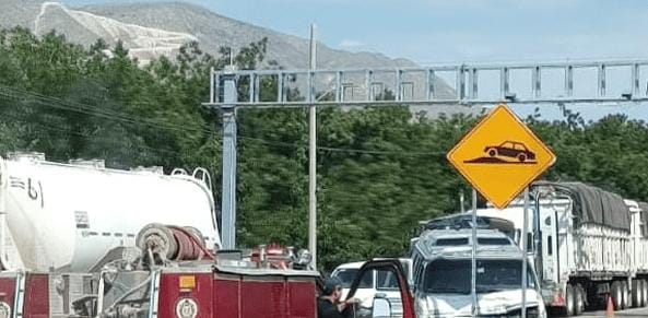 Chihuahua.- Una camioneta tipo Van chocó por la parte trasera a un tráiler de color amarillo, justo en el reductor de velocidad de la caseta Fitosanitaria de Camargo.