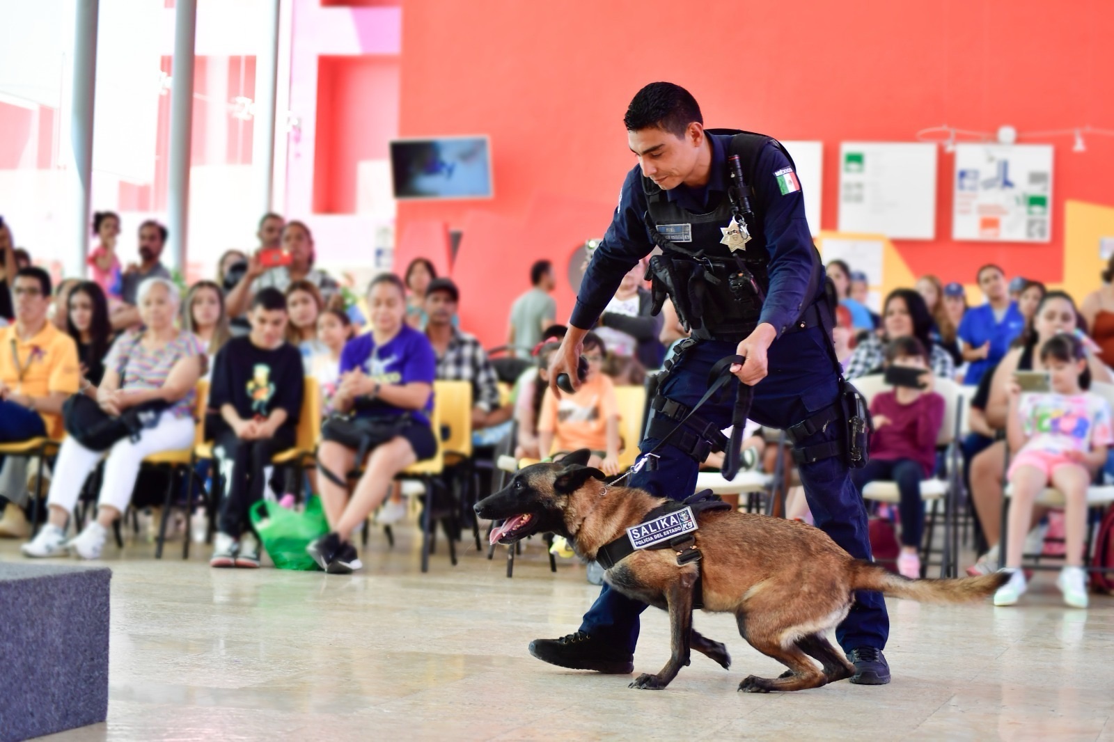 Durante las actividades, los agentes coordinados por la Subsecretaría de Participación Ciudadana y Prevención del Delito, realizaron diversas demostraciones con los caninos, desde trucos hasta la detección de juguetes ocultos entre los asistentes.