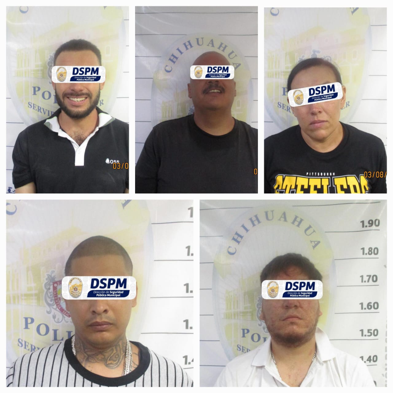Chihuahua, Chih.- Durante un recorrido de prevención de una célula BOI, agentes de la Policía Municipal detuvieron a cinco hombres tras escuchar detonaciones de armas de fuego. Fue
