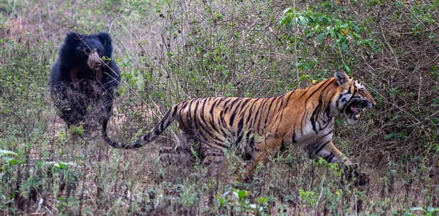 Los encuentros entre depredadores de la naturaleza son siempre un espectáculo visual, y un reciente video captado en India muestra la impresionante pelea entre un oso bezudo y