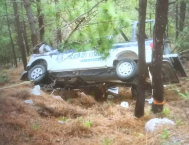 Chihuahua, Chih.- Dos agentes de la Secretaría de Seguridad Pública Estatal resultaron lesionados luego de una volcadura al momento que se trasladaban por la carretera Guadalupe y Calvo