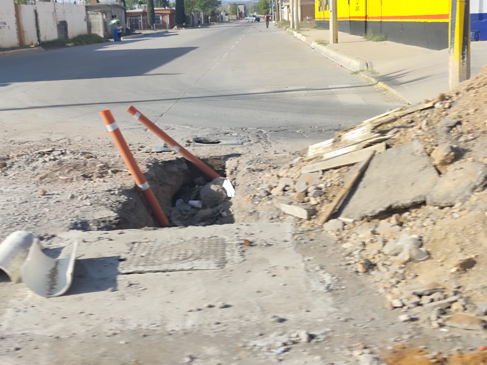 Los trabajos inconclusos afectan desde la Misión de Santa Bárbara hasta la 16 de Septiembre, en el Periférico de la Juventud. Ante esta situación, los ciudadanos hacen un llamado urgente a las autoridades para que concluyan las obras, ya que obstruyen el carril derecho y generan inconvenientes en el tránsito diario.