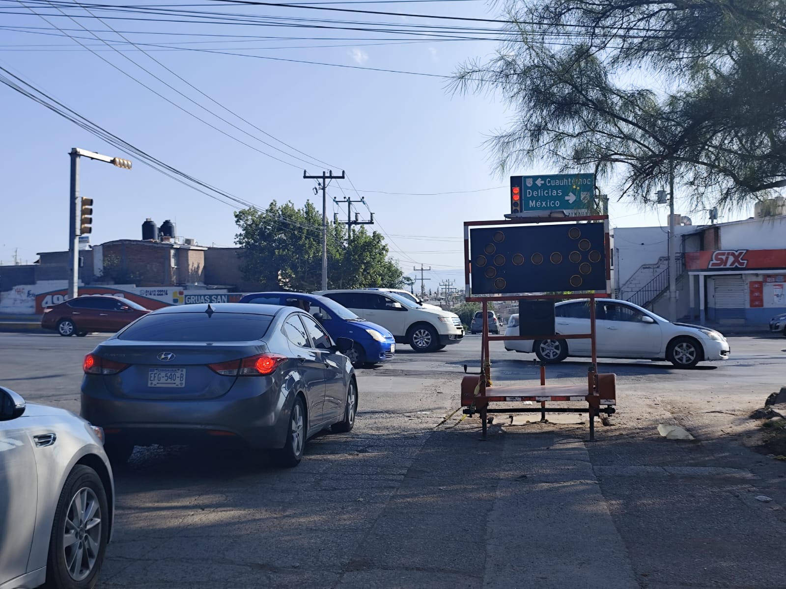 Uno de los casos más urgentes es el cierre del carril derecho en la intersección de la calle Misión de Santa Bárbara y R. Almada, que ha estado bloqueado por un letrero durante un mes y medio, impidiendo a los vecinos de la colonia Mármol II utilizar dicho carril para girar.