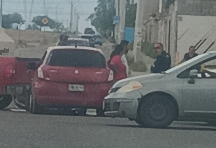 Chihuahua, Chih.- Ciudadanos captaron el choque que se ubica en la C. Anthony Quinn y Av. Guillermo Prieto Lujan en donde hubo un fuerte encontronazo, hasta el momento