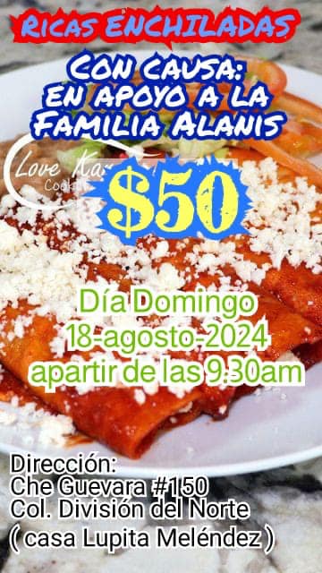 La familia afectada agradece de antemano cualquier tipo de apoyo, ya sea consumiendo en el evento o compartiendo la información.