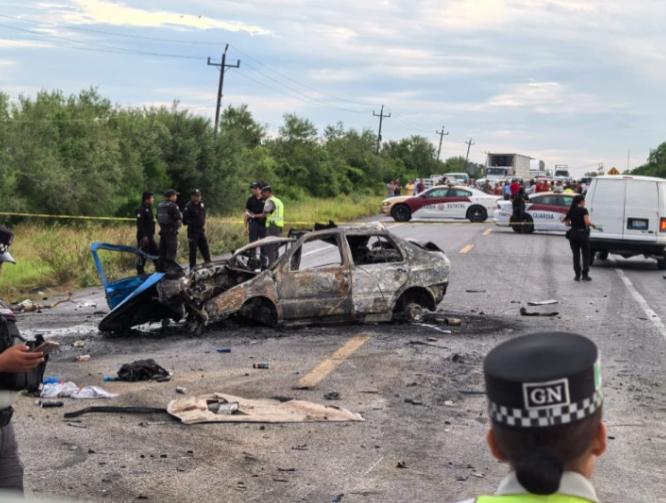 En la carretera federal que conduce de Ciudad Victoria a San Fernando, Tamaulipas, se registró un choque con incendio que dejó tres personas muertas, de las cuales una