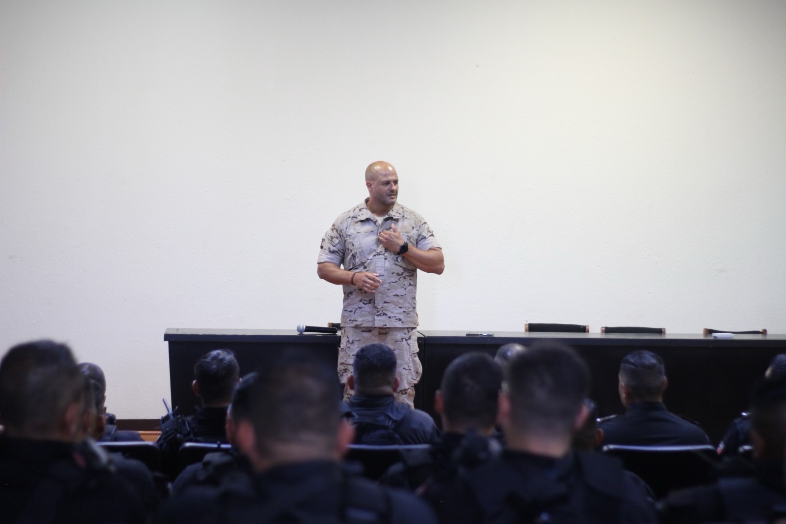 En las instalaciones del Instituto Estatal de Seguridad Pública, los miembros de los grupos especiales y sus invitados, participaron en una capacitación sobre formación policial y el despliegue de patrullas de la Fuerza Especial SWAT (FES).