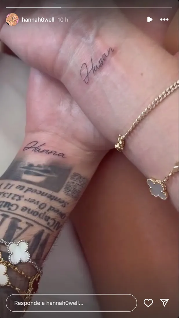 Hanna Howell sorprendió a sus seguidores al revelar un tatuaje con el nombre “Hassan” en su muñeca, un gesto romántico en honor a Peso Pluma. Esta muestra de cariño se suma al tatuaje que el cantante mexicano se hizo previamente con el nombre de Hanna, demostrando la solidez de su relación.