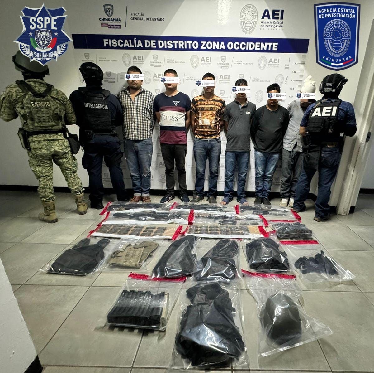 Cuauhtémoc, Chih.- Derivado de los trabajos de investigación por los recientes hechos de homicidios en la ciudad de Cuauhtémoc, personal de la Secretaría de Seguridad Pública del Estado, en coordinación con la Agencia Estatal de Investigación (AEI) y SEDNA, se llevó a cabo la detención de seis presuntos delincuentes en la ciudad de Cuauhtémoc.